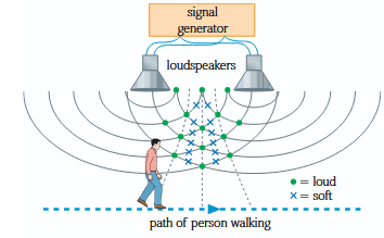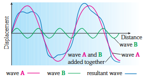 | Interference | When two or more waves overlap at a point, which has a particle displacement equal to the algebraic sum of all of the involved waves' displacements. |